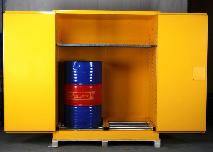 資源保護と回収法 (RCRA) は 危険な廃棄物を適切に収集し処分することを義務付けていますSSL®は,業界最大の容量ドラムストレージキャビネットを提供しています危険な/環境廃棄物ドラムのキャビネットは,重いドラムを簡単にロードするためにローラーボトムを装備しています.